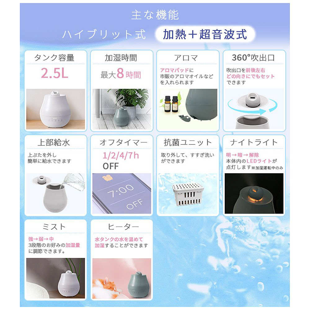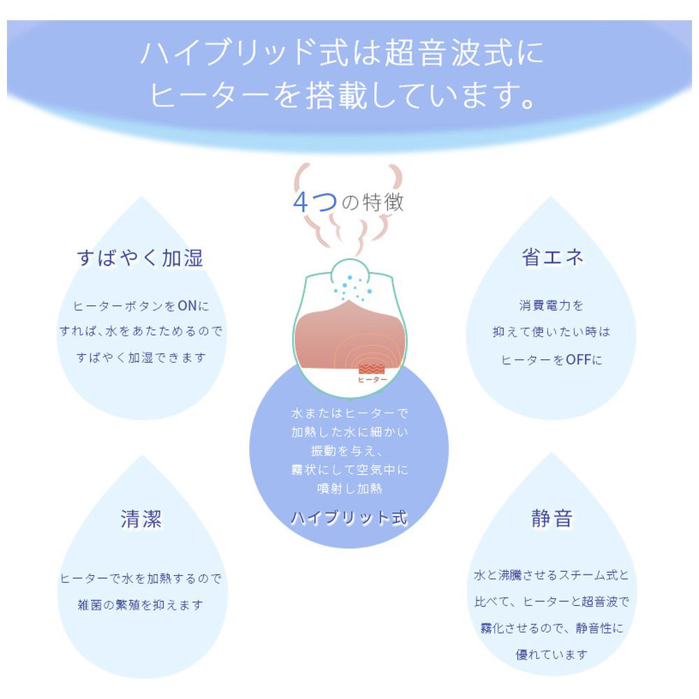 アロマの香りを楽しめるヒーター搭載ハイブリット式加湿器