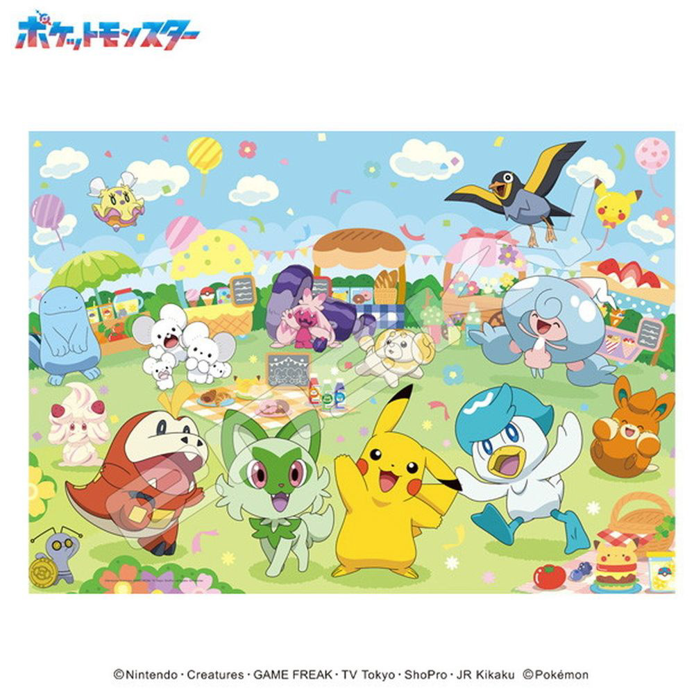 ポケモンたちがマーケットに集まってうきうきな様子を描いた、楽しげなイラストのパズルです。