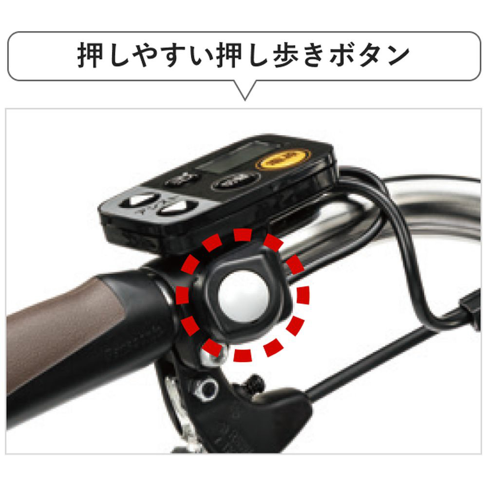 上り坂で押し歩き中に押し歩きボタンから指が離れても、ずり下がり抑制機能が起動し、約10秒間、自転車が勢いよくずり下がることを抑制します。