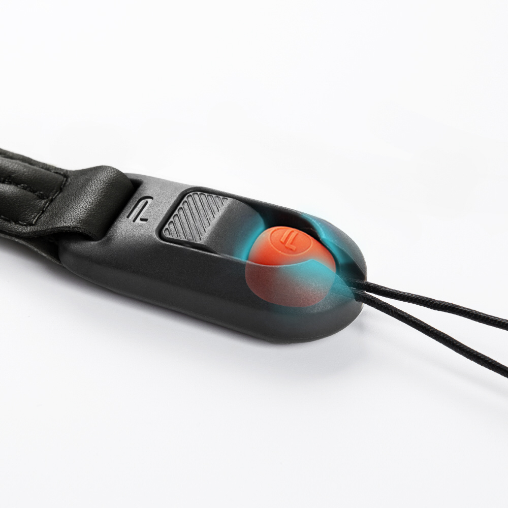 丸く成型されたクイックビーズがロックされている状態では、全方向から力が加わってもクイックビーズが外れる事は無く、ストラップからの脱落を引き起こしません。