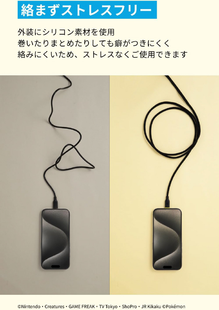 ピカチュウと一緒なら、充電はもっとたのしくなる。絡みにくいやわらかさを実現したUSB-Cケーブル