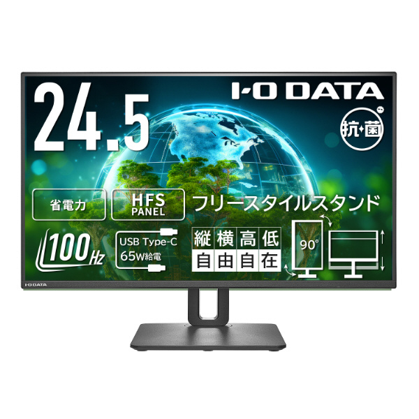 高い持続力の抗菌加工で安心!24.5型スタンドが見やすい位置や高さに調節可能 ノートPCへの給電も可能なUSB Type-C(R)搭載