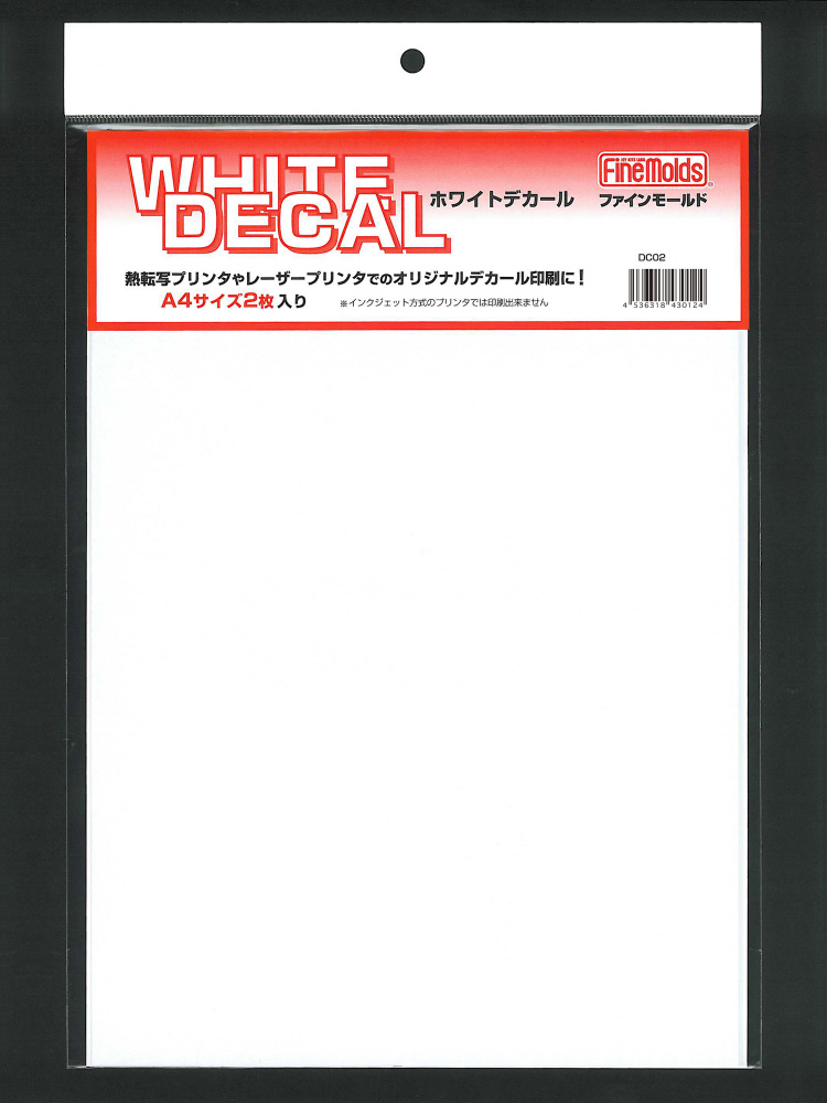 オリジナルデカール製作用の白地デカール。ご自身で製作されたデータなどをプリントしてキットに貼付して使用します。