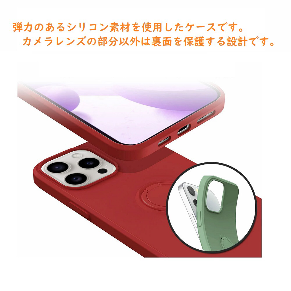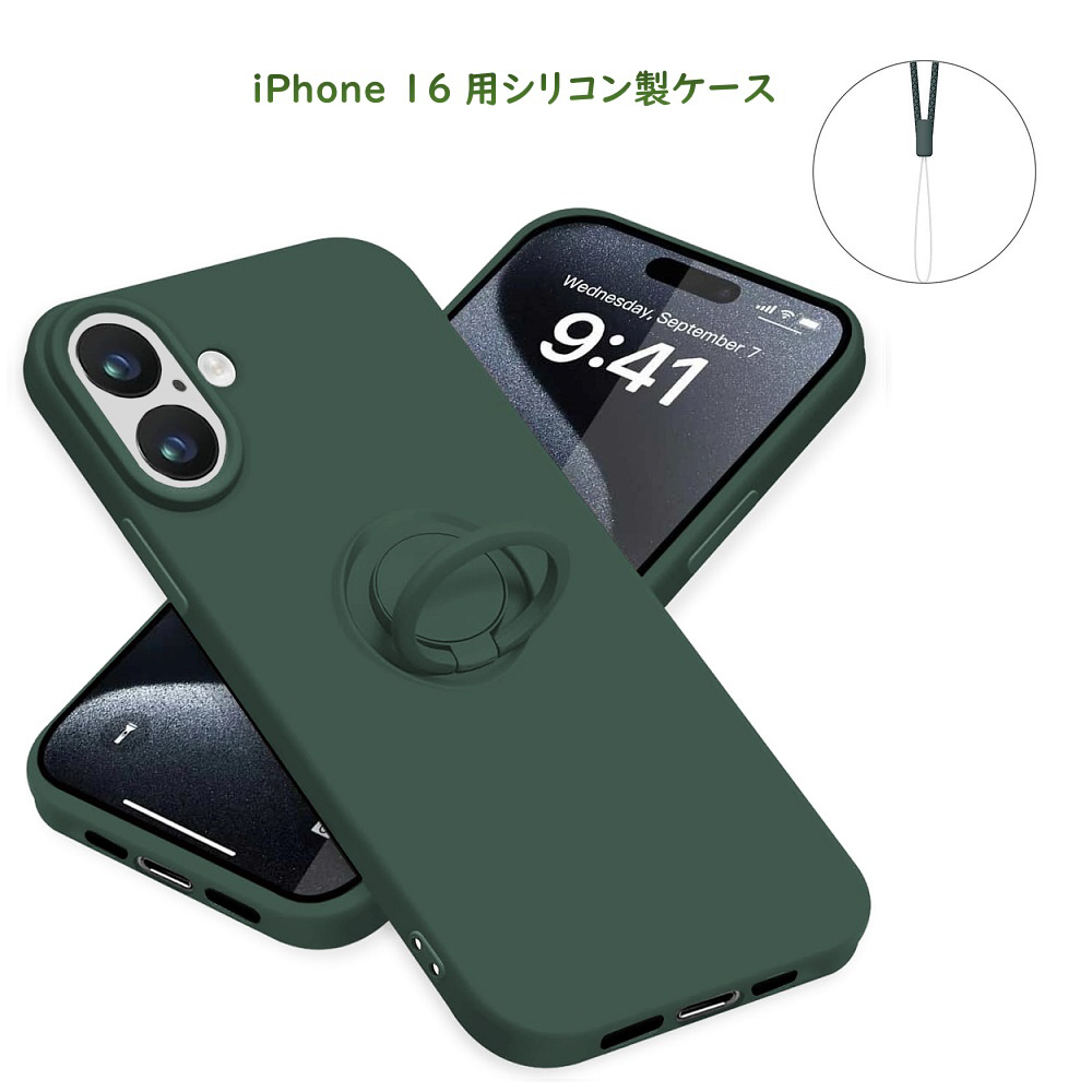 iPhone 16 シリコン製ケース リング付 ダークグリーン RM-16Sili-DG