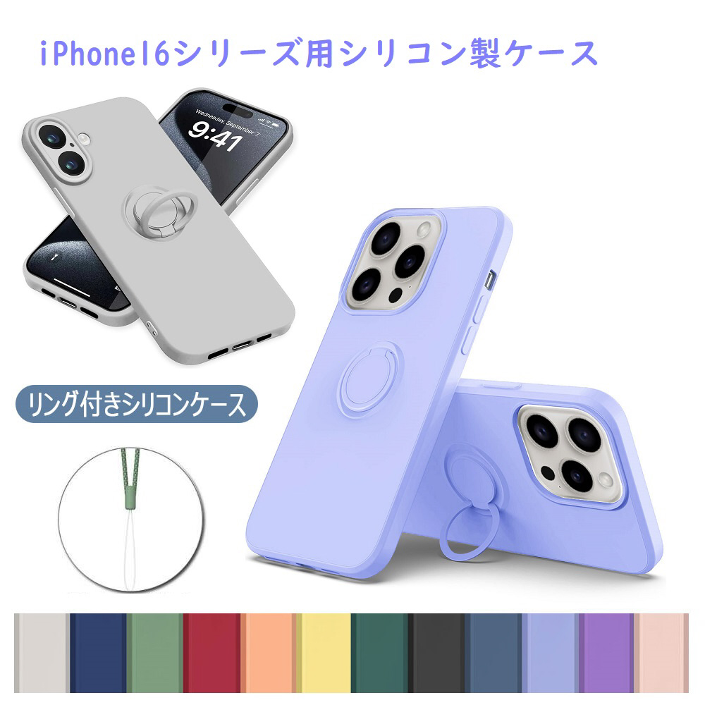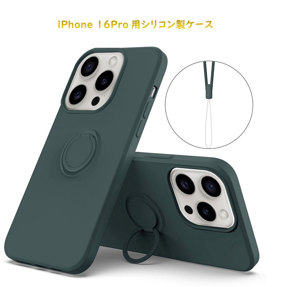 iPhone 16 Pro シリコン製ケース リング付 ダークグリーン RM-16PRSili-DG