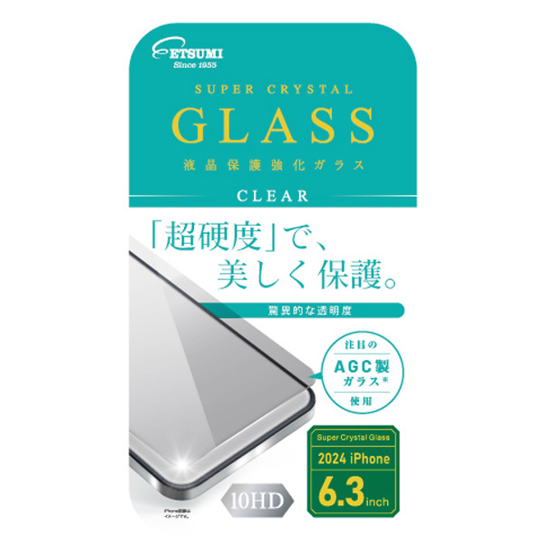 iPhone 16 Pro対応の液晶保護超強化ガラス。「高透明」「高硬度10HD」の光沢タイプ。信頼のAGCガラスを使用。歪みがなく、ディスプレイもはっきり見えます。