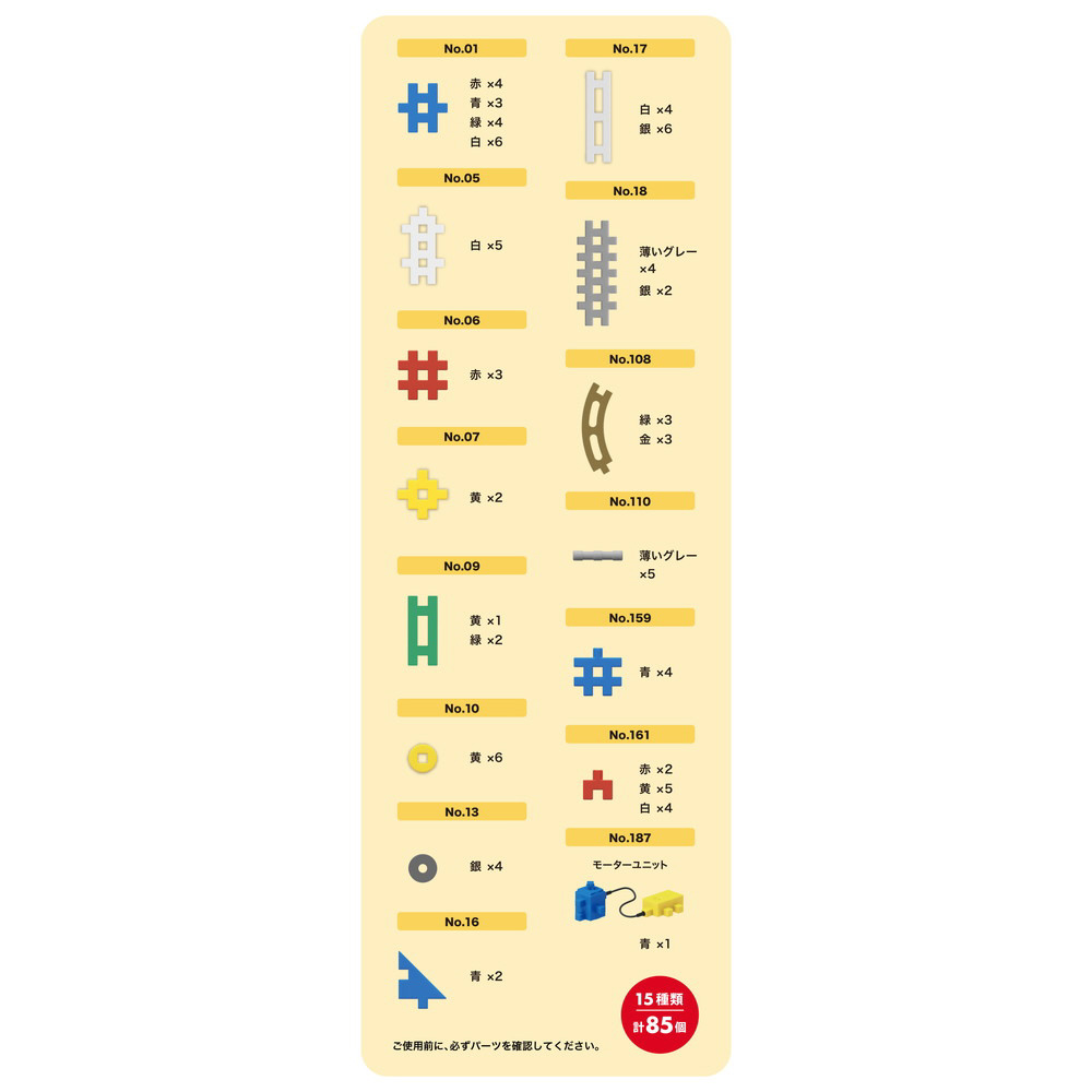 ブロック、パーツ15種85個(ブロック14種84個、モーターユニット1個)