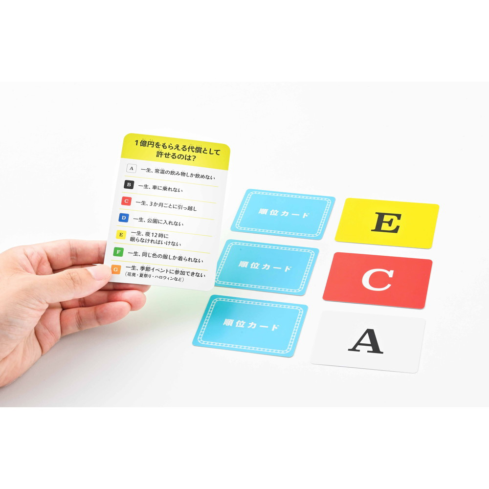 相手の好みや価値観を予想して、1・2・3位をぴったり当てるコミュニケーションゲームです。