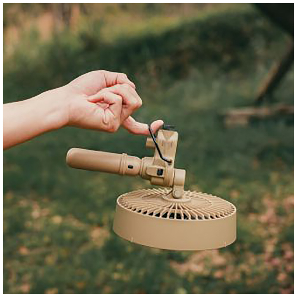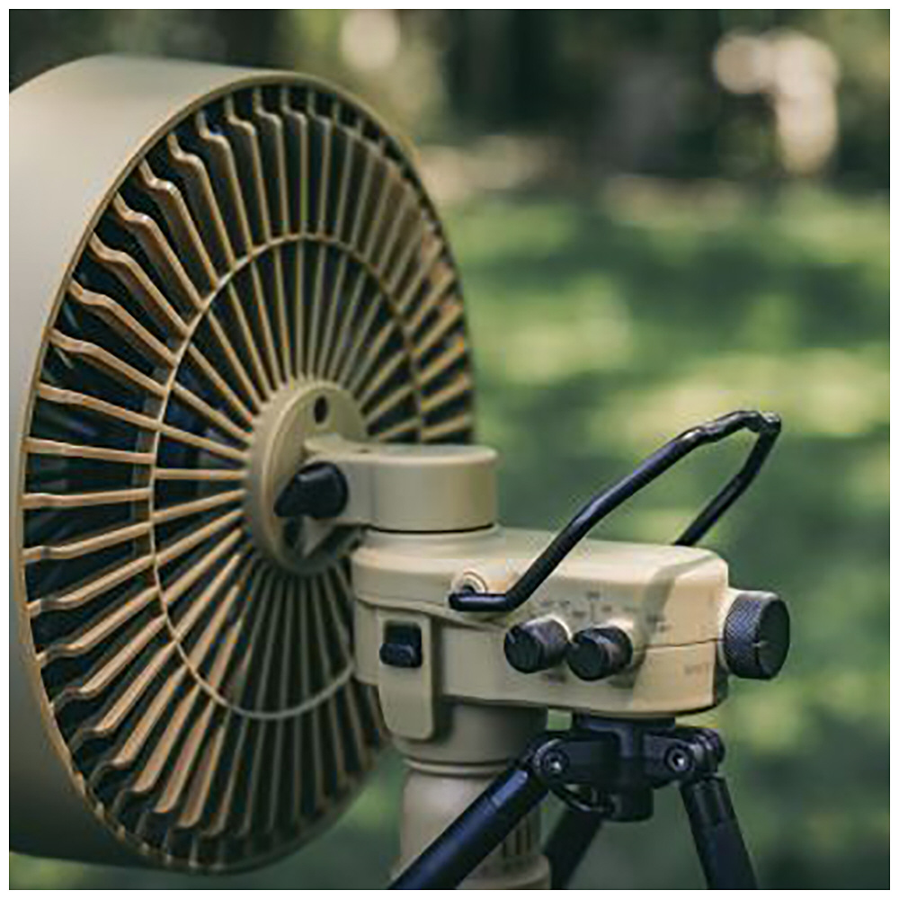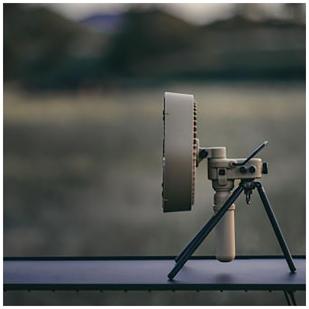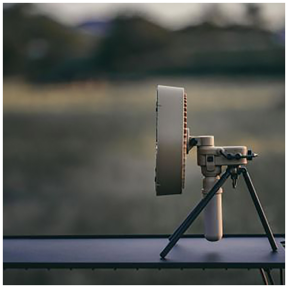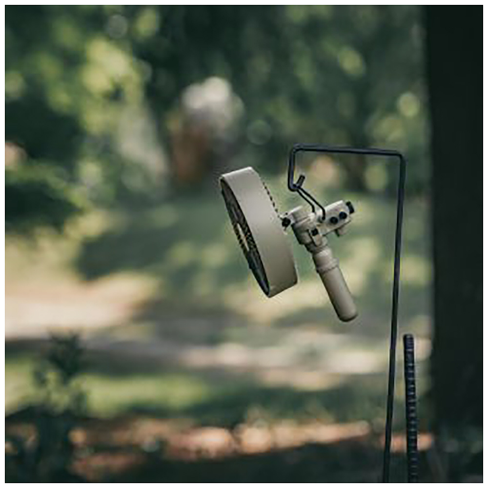 ■三脚を取り付けて首を90度上に向けたり、フックで高い位置から吊り下げたりできるため、サーキュレーターとしても活躍。テント内上部に溜まった暖かい空気を循環させ、テント内をまんべんなく暖めることができます。