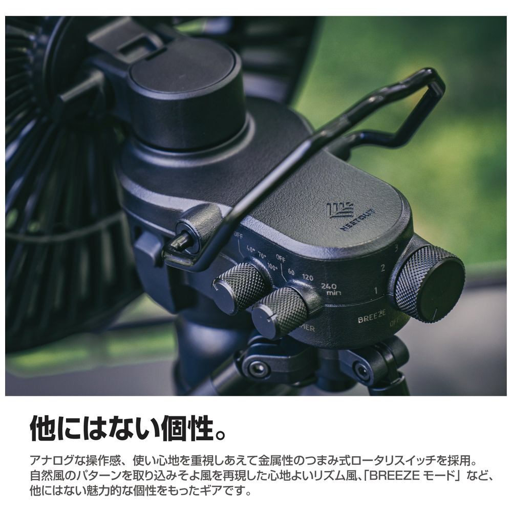 夏は涼しい風を運び、冬はテント内をくまなく暖める。季節を問わず使える、“NESTOUT(ネストアウト)”シリーズのミドルサイズファンです。