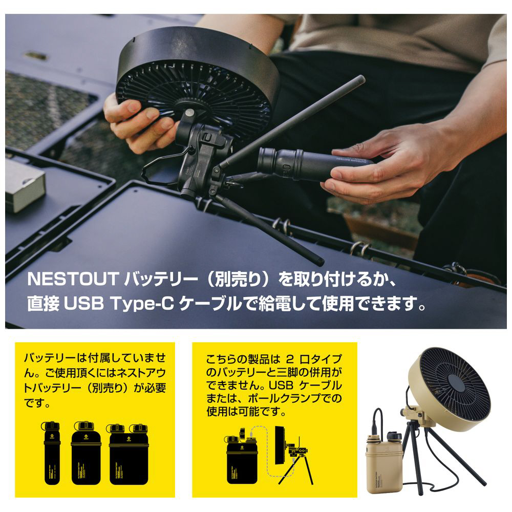 ■ネストアウト アウトドアバッテリーに取り付けて使えるミドルサイズファンです。