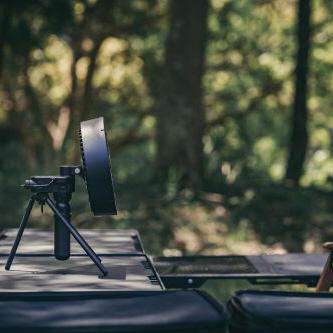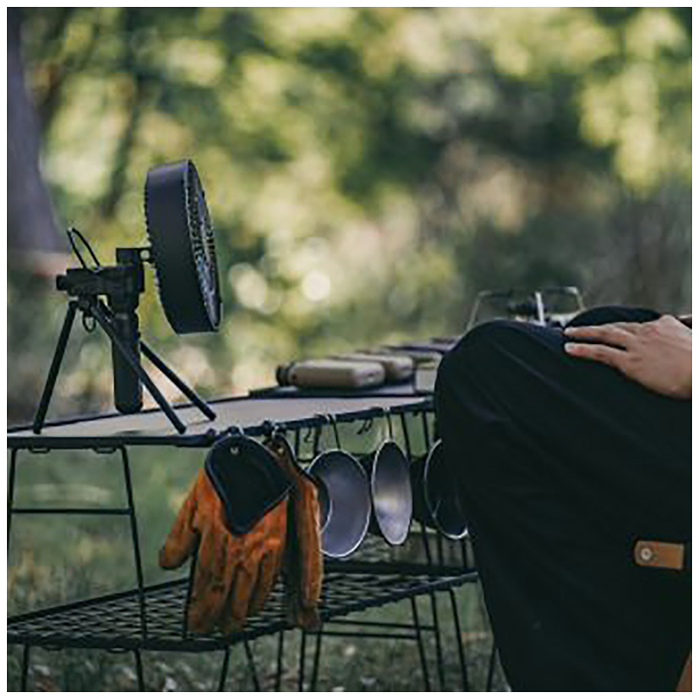 夏は涼しい風を運び、冬はテント内をくまなく暖める。季節を問わず使える、“NESTOUT(ネストアウト)”シリーズのミドルサイズファンです。三脚に取り付けたり天井から吊るしたりとさまざまな使い方が可能。風の強さや角度も選べます。