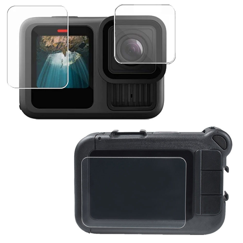 HERO13 Black用に最適化された、メディアモジュラー対応の背面・前面液晶とレンズ保護ガラスフィルムセットです。
