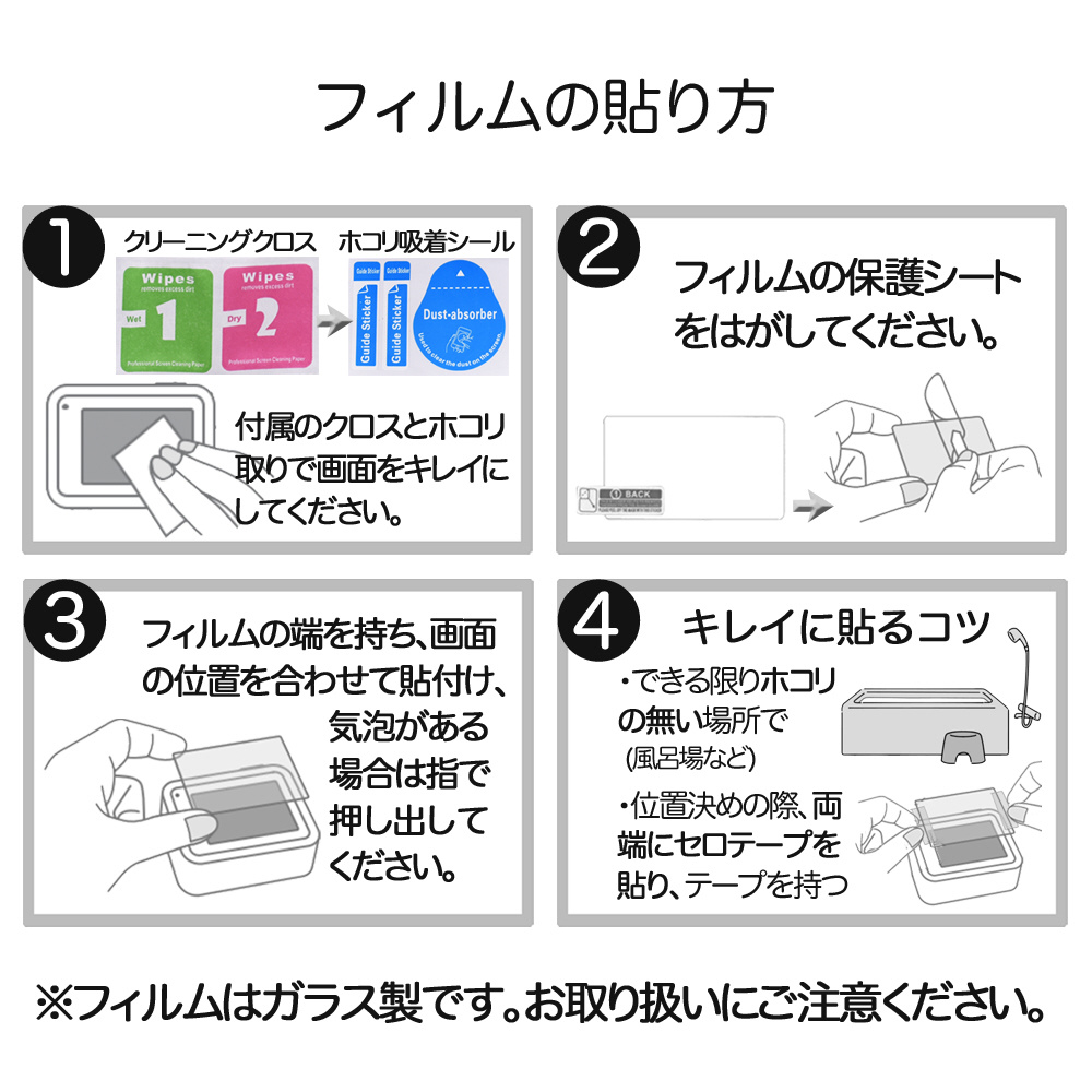 取り付け前に液晶画面をきれいにできるクリーニングシートが付属。