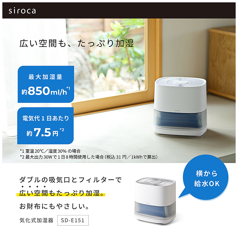 気化式加湿器 ホワイト SD-E151(W) [気化式]