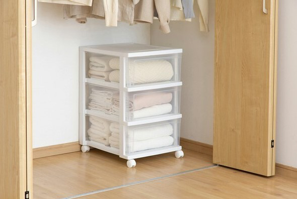 クローゼットにぴったりの奥行50cmの組立式クローゼットチェストです。
