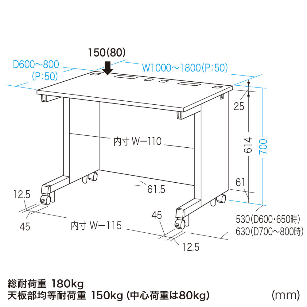 ●総耐荷重180kgです。重量のある機器の設置等も可能です。