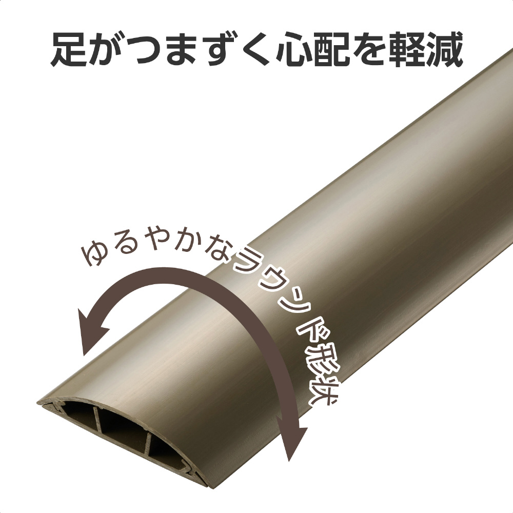 ゆるやかなR形状で、足がつまずく心配を軽減。床配線の際のケーブルを保護し、すっきりと収納できる長さ1m幅78mmの床用モール。