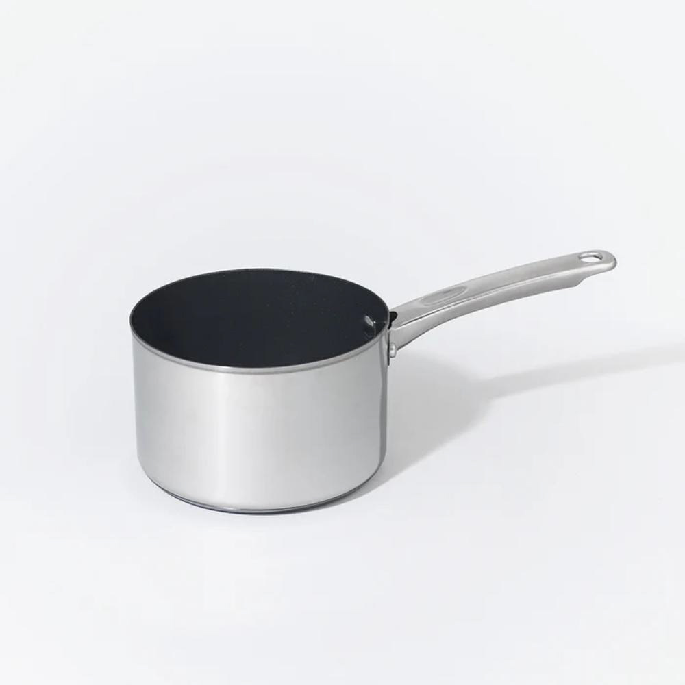 シンプルで使いやすい14cmミルクパン。 IH/ガス対応、焦げ付きにくいノンスティック加工で、様々な料理に最適です。