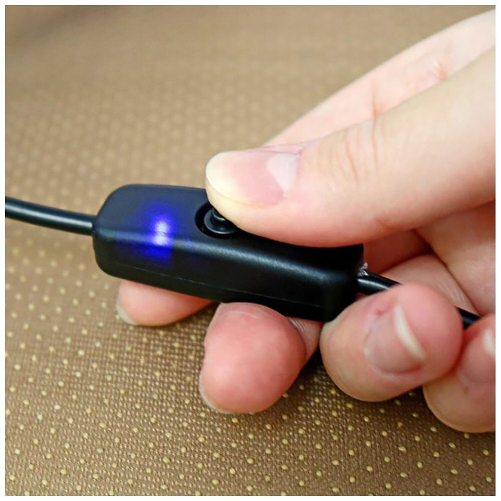 ワンタッチでかんたん操作。オンにしてから5分ほどで座面が温かくなります。