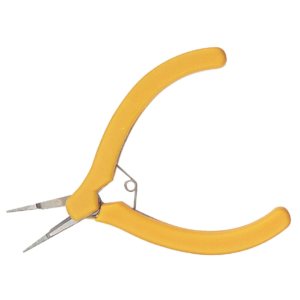 先端で掴む、曲げる作業、奥では真鍮線などの切断もできるステンレス製ペンチ。