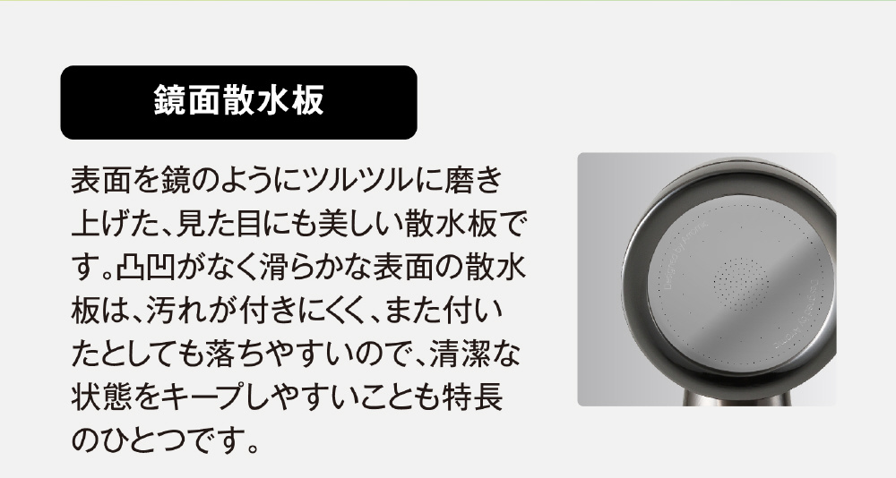 ステンレスコーティングでキズ・サビ・汚れに強く、鏡面散水板採用で見た目も美しく演出。
