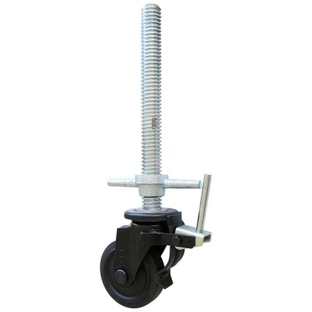 シシク ジャッキ式キャスタ ブラックライン ゴム車輪付 ロッド棒ストッパー 車輪径130mm BKWSJ130