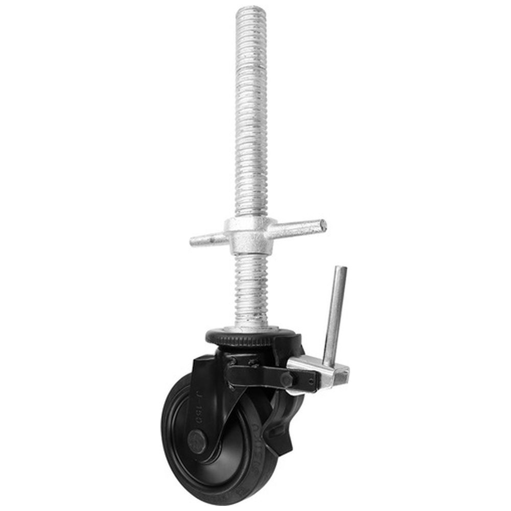 シシク ジャッキ式キャスタ ブラックライン ゴム車輪付 ロッド棒ストッパー 車輪径150mm BKWSJ150