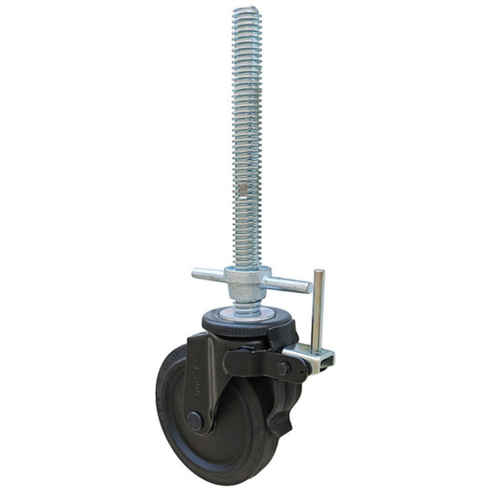 シシク ジャッキ式キャスタ ブラックライン ゴム車輪付 ロッド棒ストッパー 車輪径200mm BKWSJ200