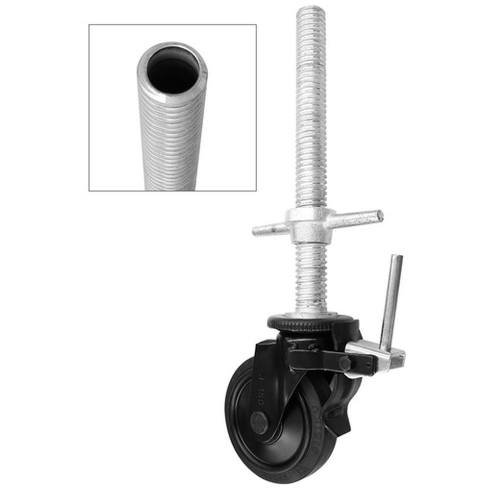 シシク ジャッキ式キャスタ 中空型・ブラックライン ゴム車輪付 ロッド棒ストッパー 車輪径150mm BKWSJP150