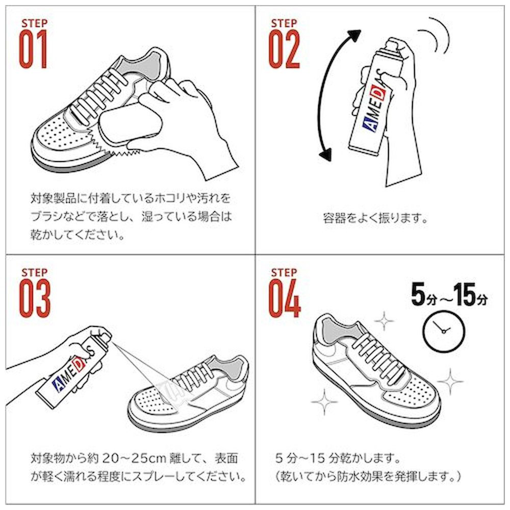 強力撥水&抗菌効果。靴やバッグ、傘など様々な素材に対応した防水スプレー。汚れを付きにくくし、ニオイも抑制します。