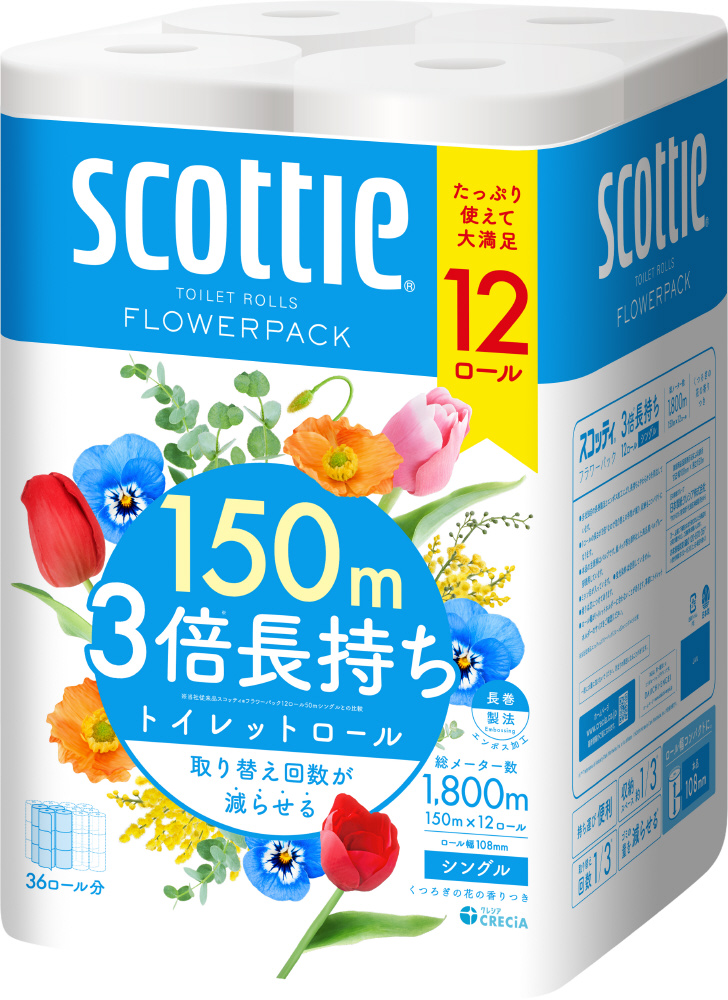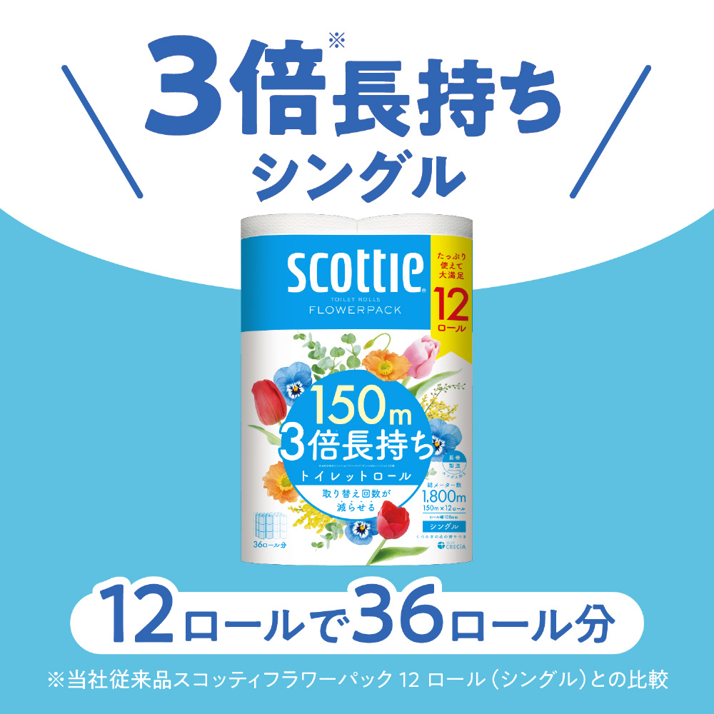 scottie(スコッティ)フラワーパック 3倍長持ち 150m 12ロール シングル