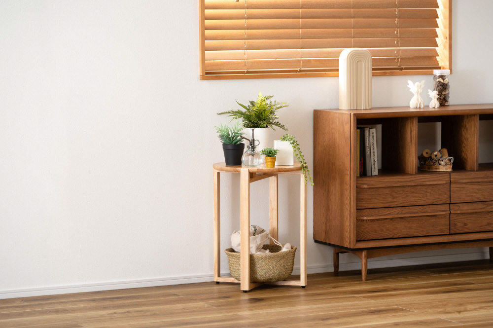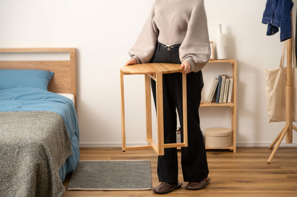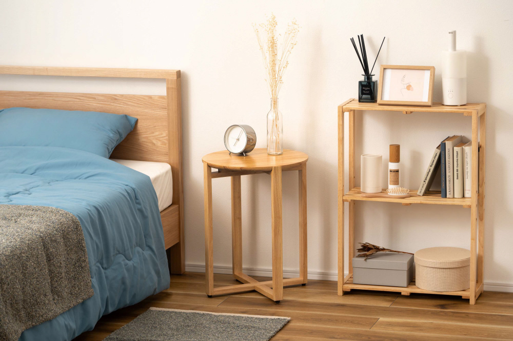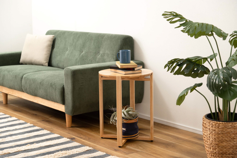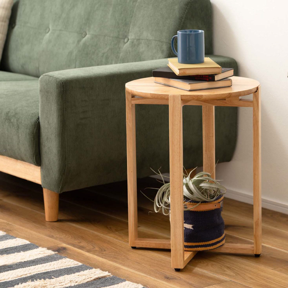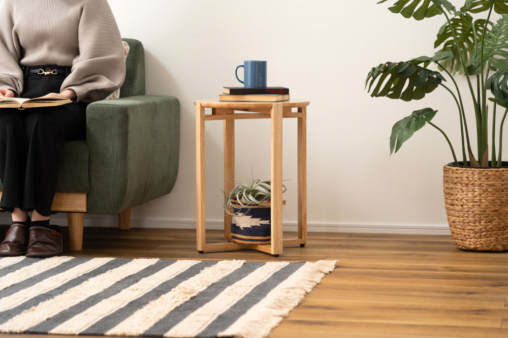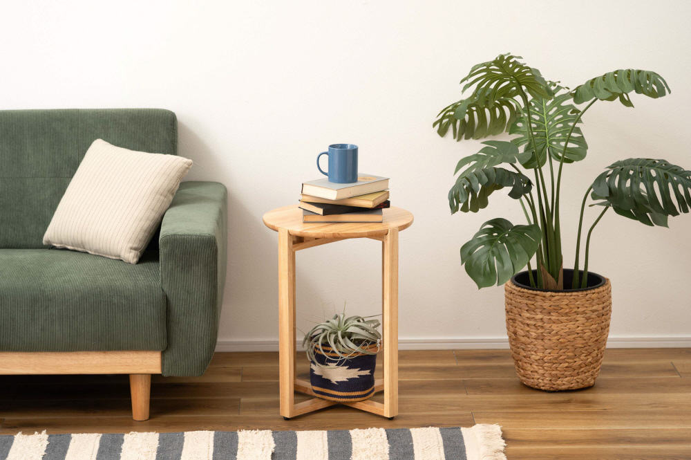 天然木のぬくもり感じる北欧デザインの使い勝手の良いサイドテーブル。