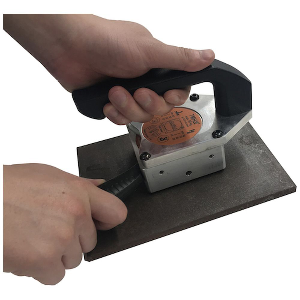 小型軽量の手動式マグネットツール。丸鋼・丸パイプ・平鋼に対応し、50kgの荷重に対応します。