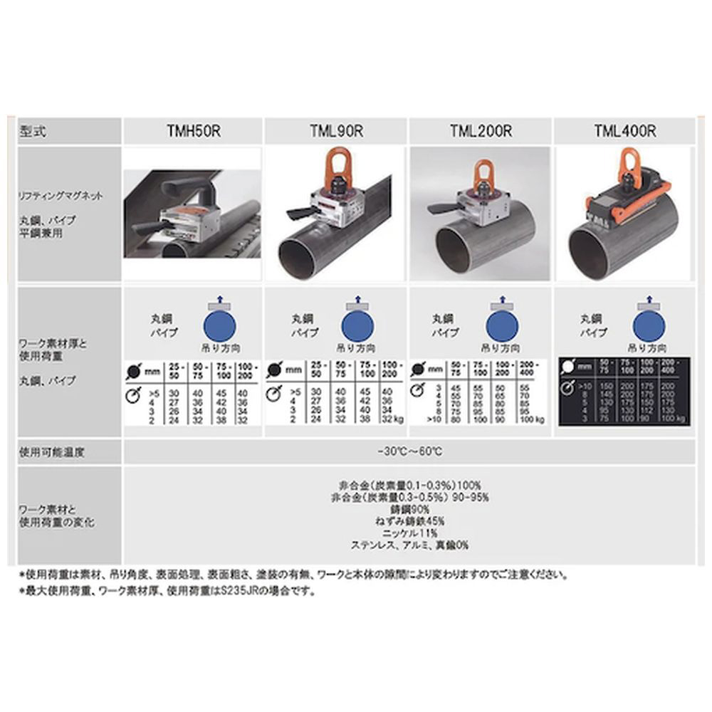 DAIDОHANT アルフラ リフティングマグネット 丸鋼丸パイプ/平鋼兼用 使用荷重50kg TMH50R 10103272