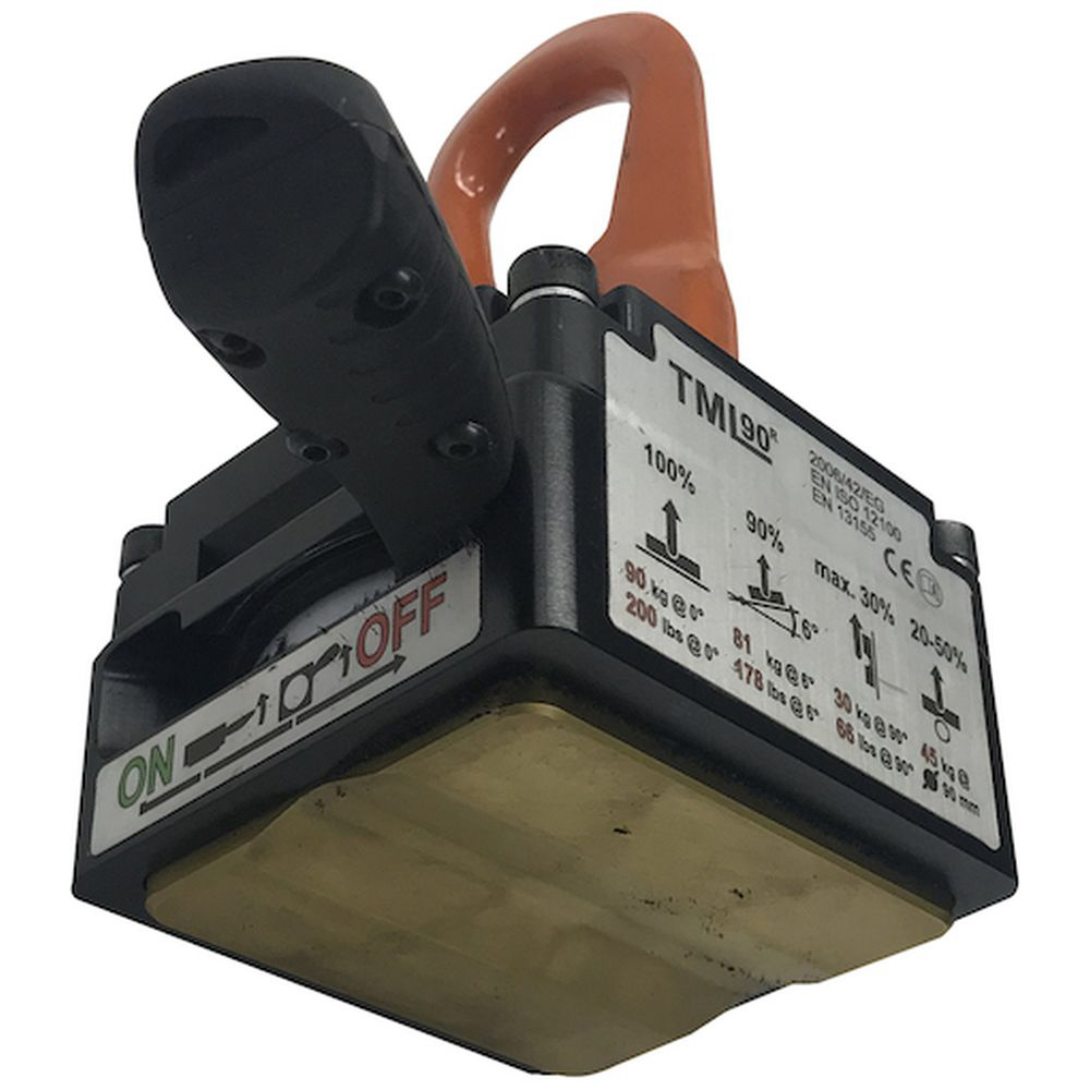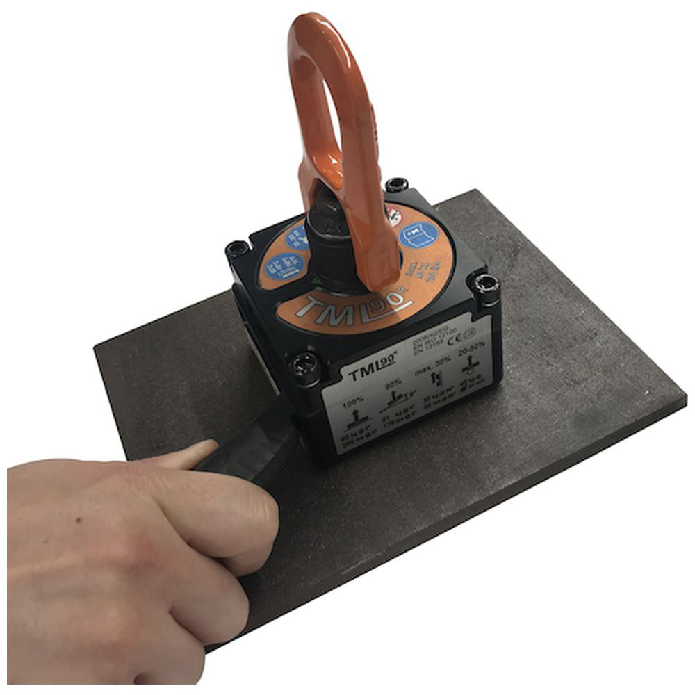 小型軽量で使いやすい手動スイッチ式マグネットツール。平鋼、丸鋼、丸パイプに対応し、90kgの荷重に対応可能。