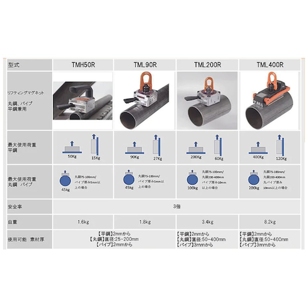 DAIDОHANT アルフラ リフティングマグネット 丸鋼丸パイプ/平鋼兼用 使用荷重90kg TML90R 10103273