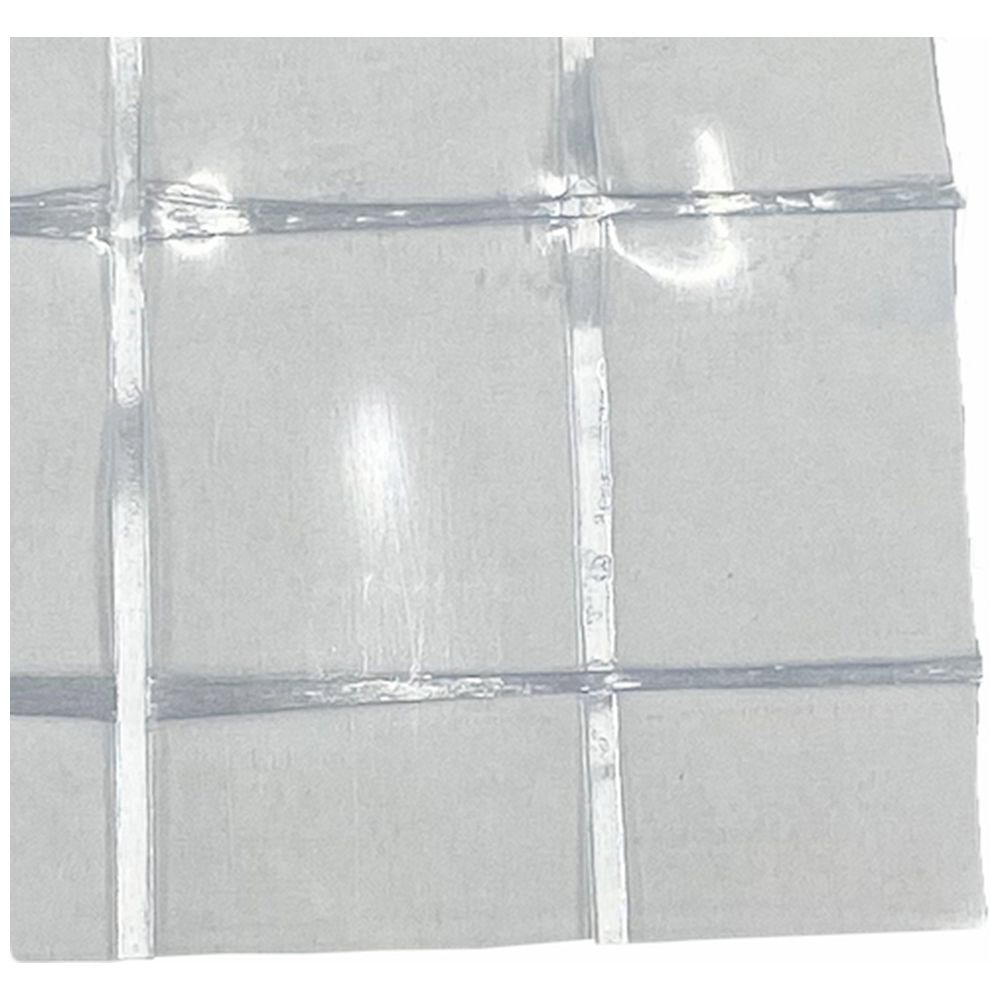 防炎機能と高耐候機能が付いており、屋内外でカーテン、間仕切り、カバー、飛沫感染対策などに使える糸入りの透明シートです。