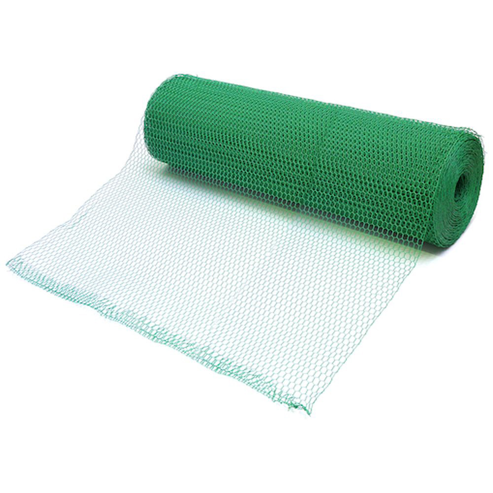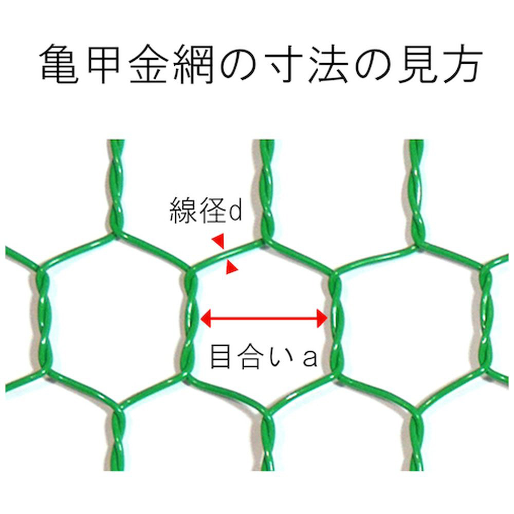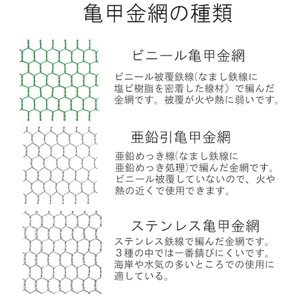 軽量で加工しやすいビニール亀甲金網。線材の一部が切れても裂けにくく、耐久性にも優れています。