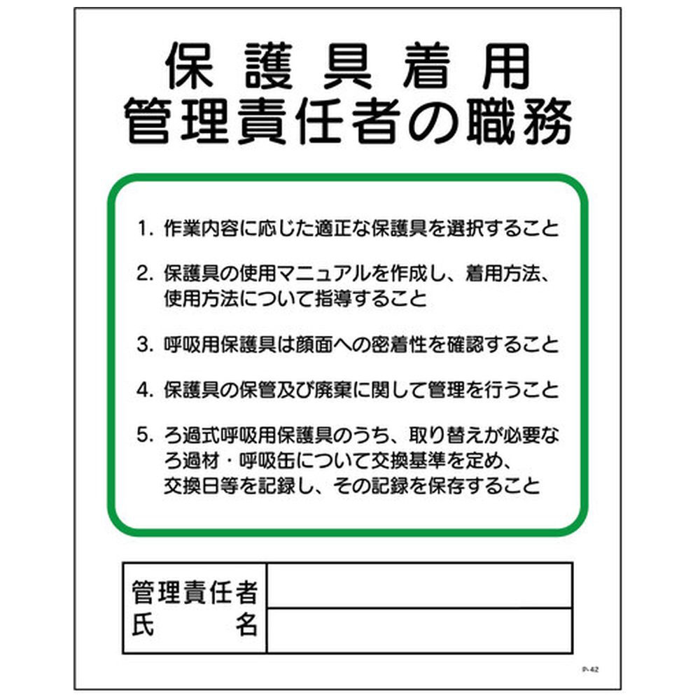 P板 保護具着用管理責任者の職務 P−42 1145110142