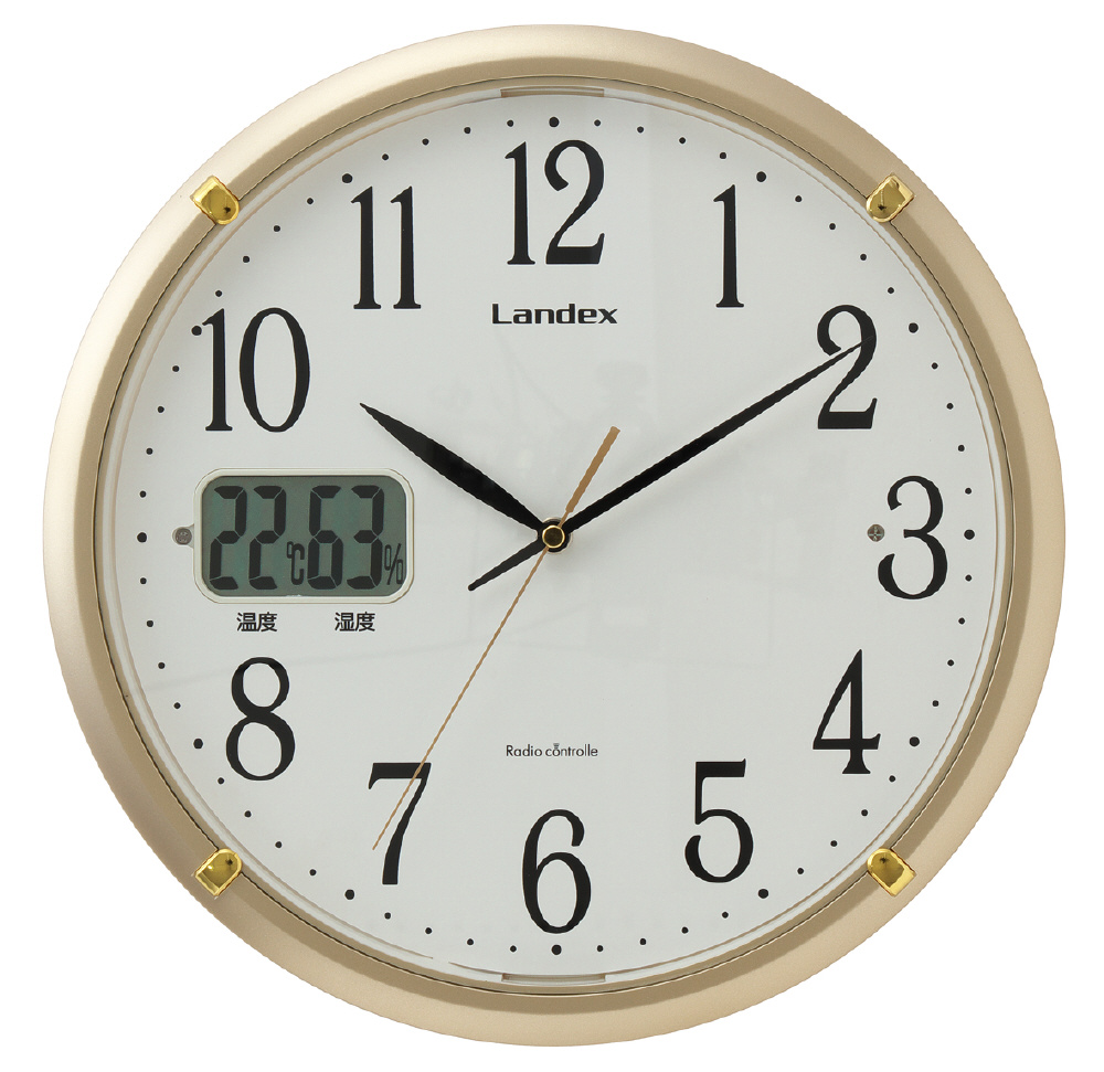 ランデックス(Landex) 掛け時計 電波時計 ゴールド 32.5cm ソクテルEX アナログ 温度 湿度 ライト付き 夜間秒針停止 自動点灯 YW9150GD