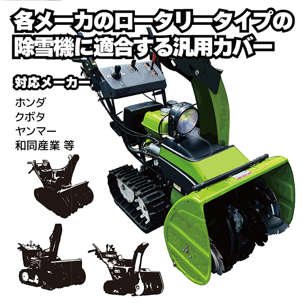 色褪せにくいブラックの生地で仕上げたロータリータイプの除雪機専用の汎用カバーです。