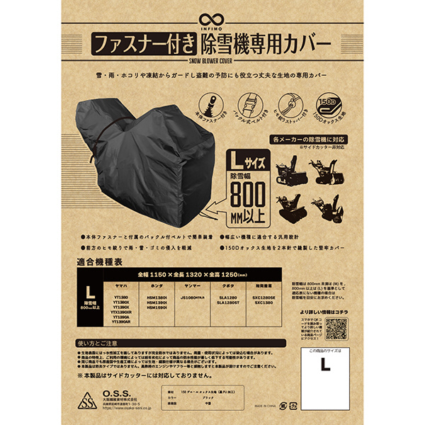 IMA95404 INFIMO 除雪機ロータリータイプ汎用カバー ファスナー付き(Lサイズ) カラー:ブラック ブレード幅800mm以上