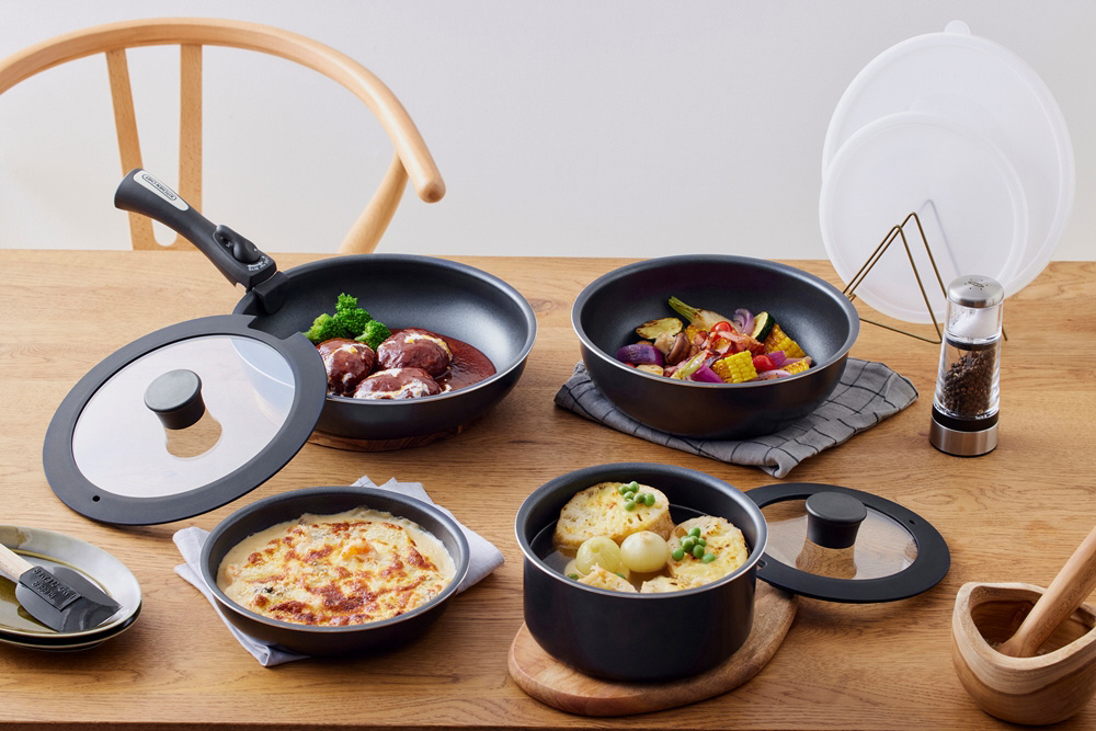 ダイヤモンドコーティングを使用したフライパン・なべのセットです。