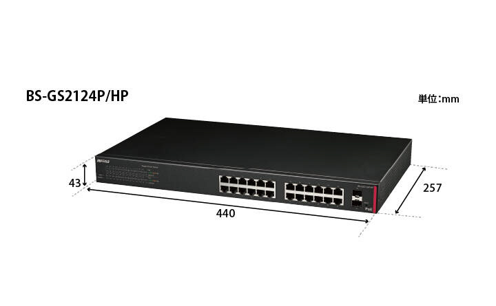スイッチングハブ [24ポート /1Giga対応 /PoE給電 /電源内蔵] SFP ブラック BS-GS2124P/HP