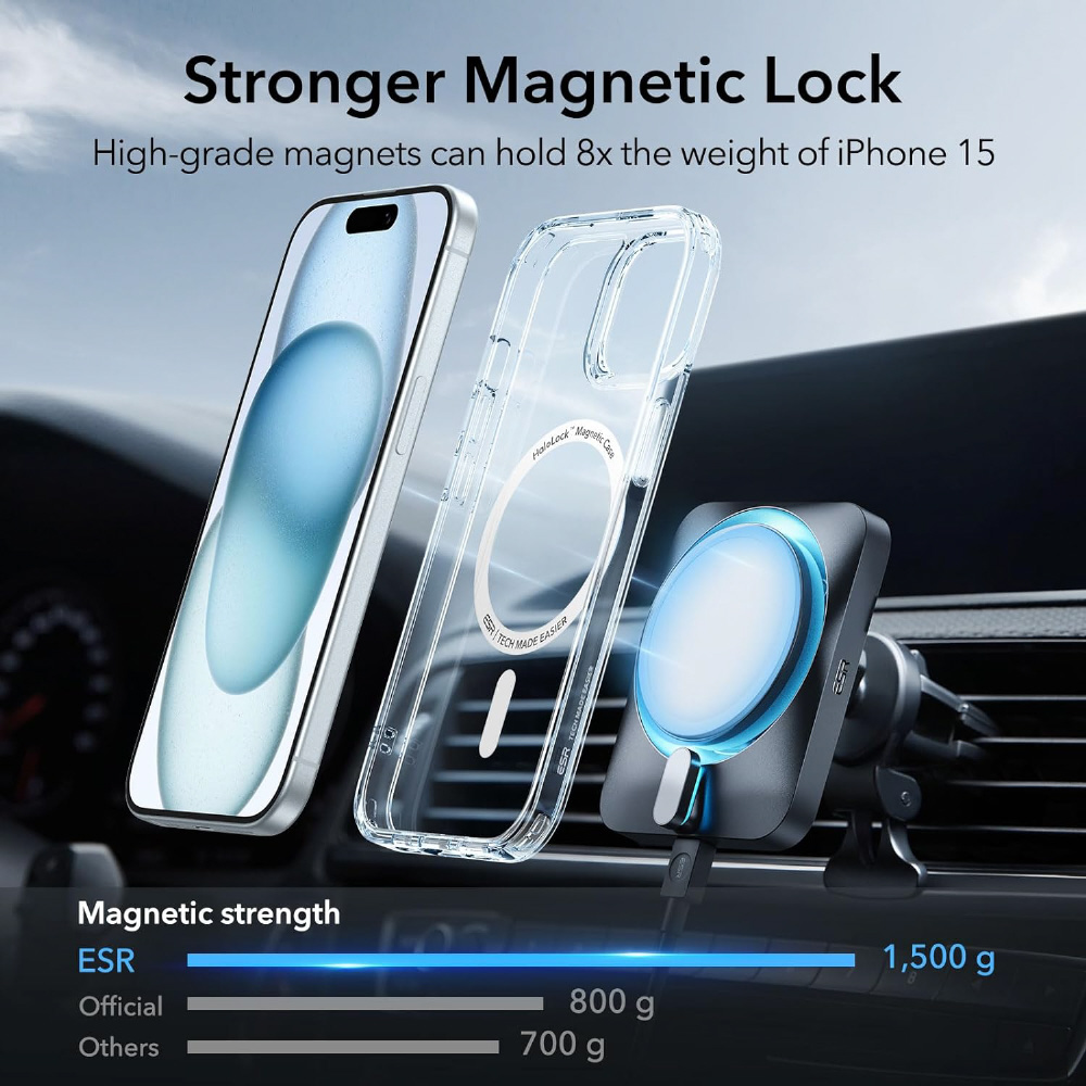 1,500 gの吸着力を持つ強力な内蔵磁石により、素早く簡単にワンタッチでワイヤレス充電が可能で、MagSafeアクセサリーを確実に吸着します。