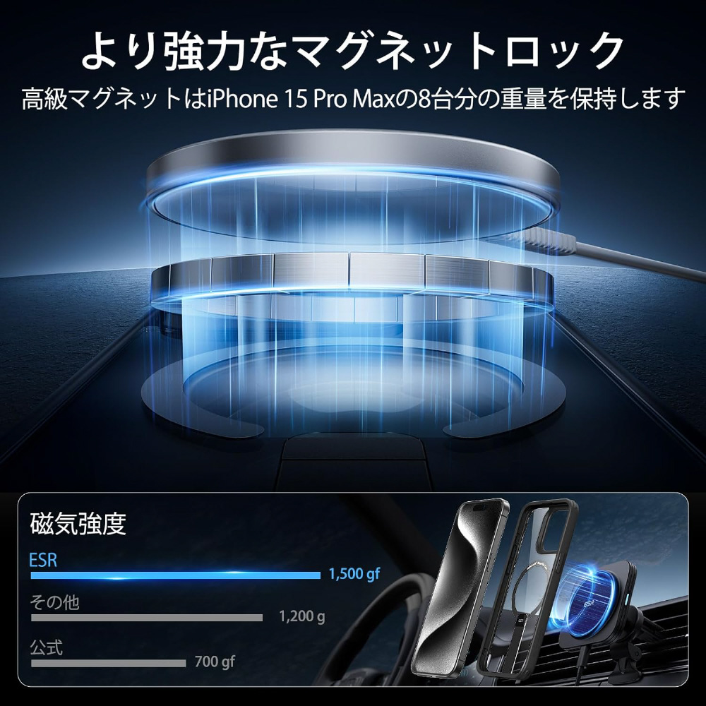 1,500gの保持力を持つ強力な内蔵マグネットにより、より速く、より簡単な外出先ワイヤレス充電、およびあらゆるMagSafeアクセサリーとの吸着ロックを可能にします。