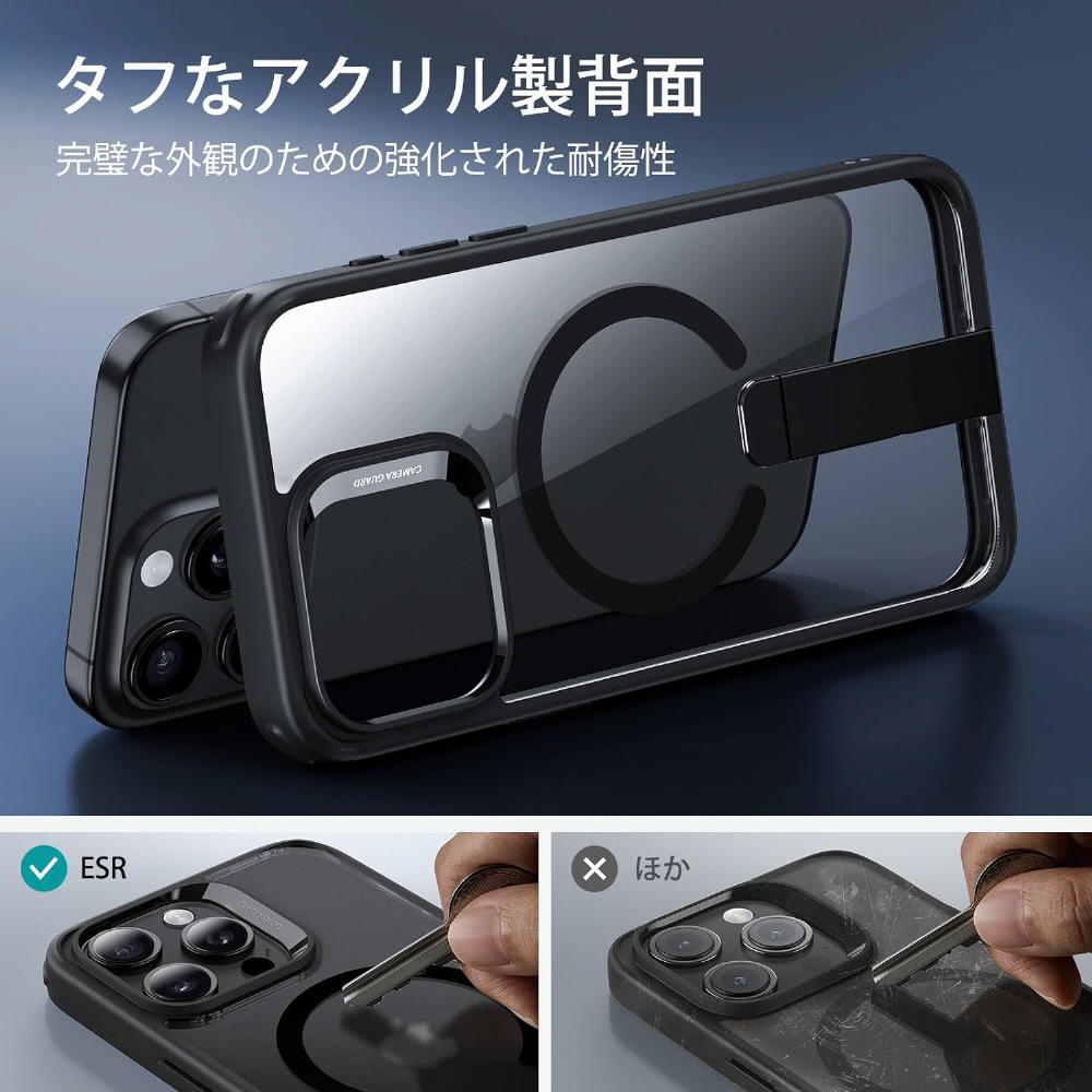 iPhone 15 Pro Max(6.7インチ)スタンド付ハイブリッドケース ESR Clear Black BoostFlickstandCase(HaloLock)foriPhone15ProMax