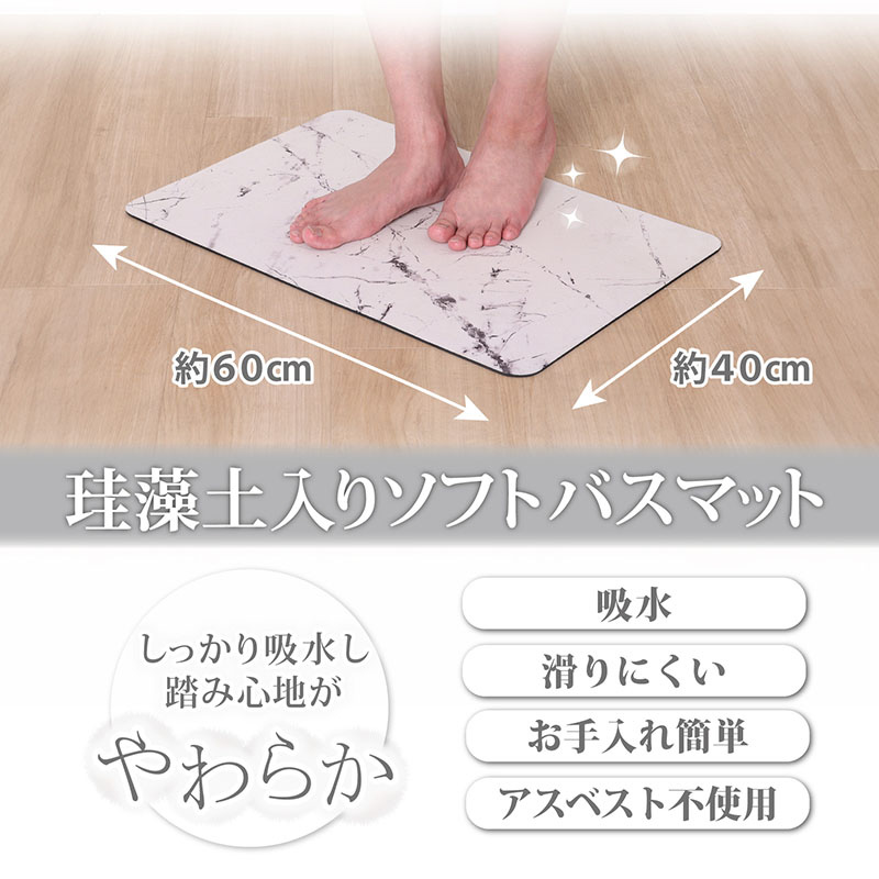 吸水性・速乾性に優れた柔らかい踏み心地の珪藻土入りソフトバスマット