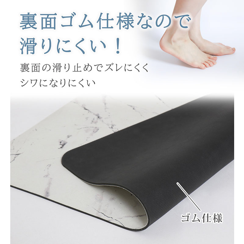 裏面は滑り止め加工が施されているのでズレにくく、玄関やキッチンでも使える。